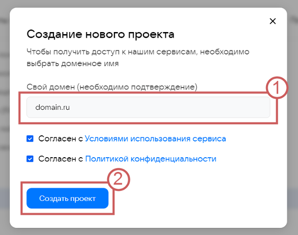 Шаг 4. В окошке укажите ваш домен, в формате domain.ru