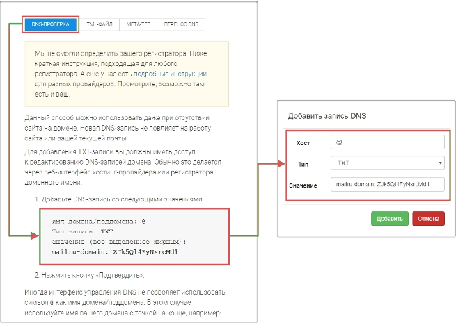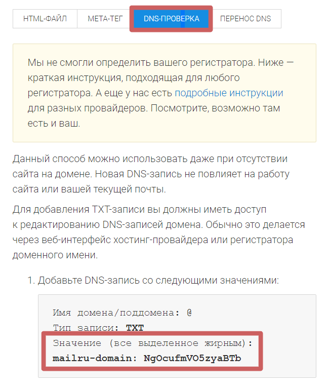 Далее, чтобы подтвердить владение доменом, нужно будет добавить записи для домена.