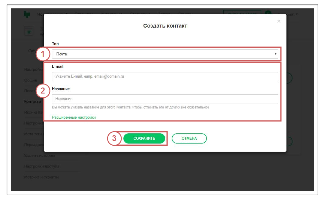 Выбираем “Тип контакта”, указываем его и нажимаем кнопку “Сохранить”.
