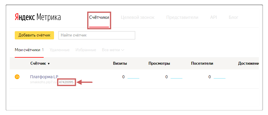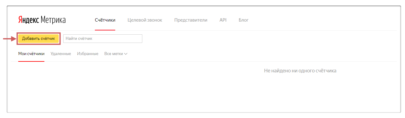 Если у вас нет аккаунта на Яндекс.Метрике или сервис еще не подключен – зарегистрируемся и подключаем номер счетчика.