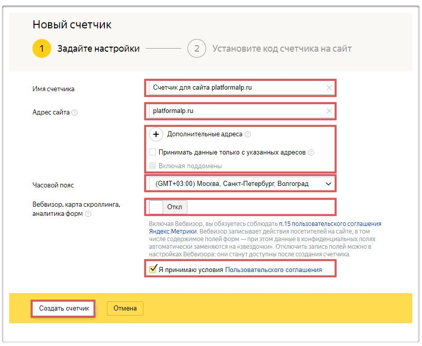 После того как заполнили и проверили все поля, нажимаем**«Создать счетчик».**