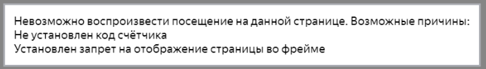 "Невозможно воспроизвести посещение на данной странице. Возможные причины: