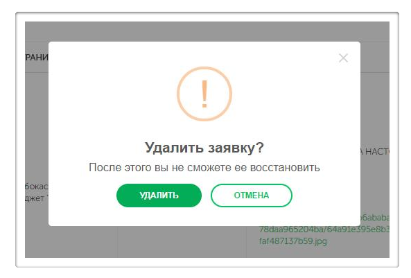 Важно! Заявки удаляются безвозвратно и не подлежат восстановлению.