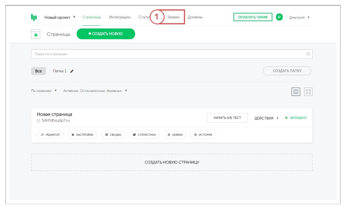 Шаг 1. Перейдём в раздел “Заявки” и нажмем “Создать заявку”.