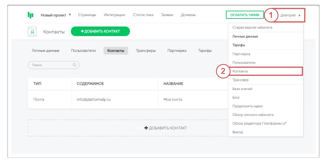Шаг 5. Обновляем страницу контактов в Платформе.