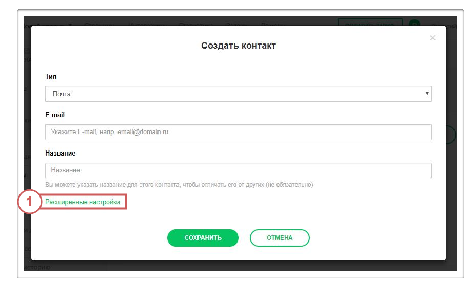 Выбираем “Тип контакта”, указываем его и нажимаем кнопку “Сохранить”.