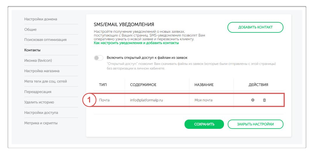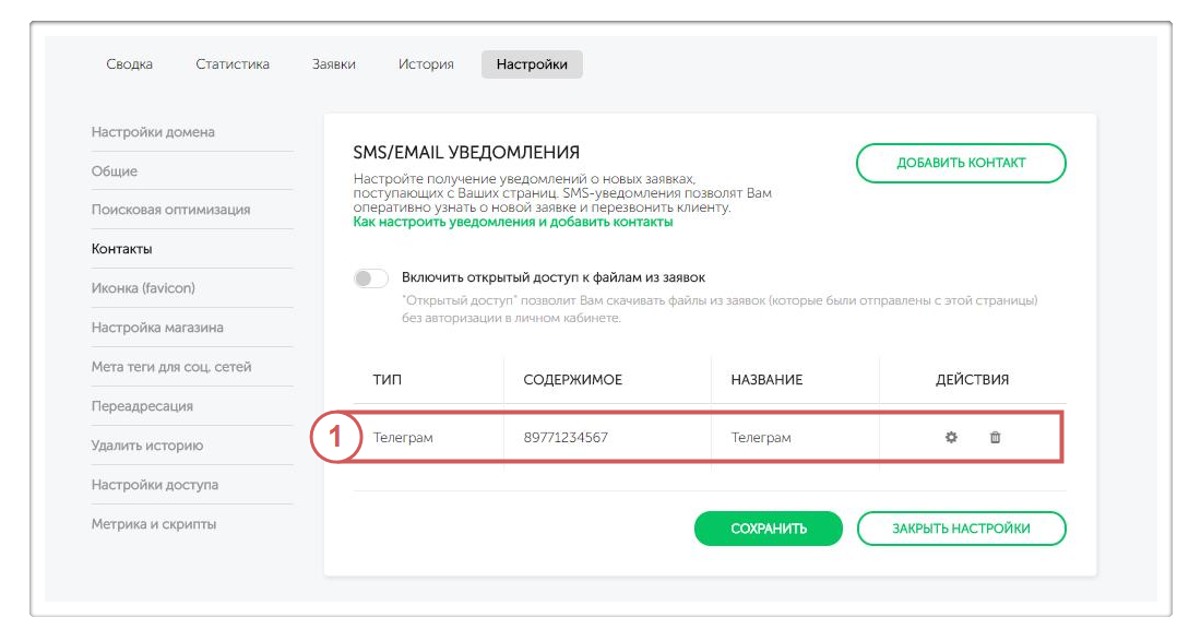 После привязки контакта, на него будут приходить уведомления о заявках с вашего сайта. Нужно привязать контакт к каждой странице, с которой вы хотите получать уведомления.