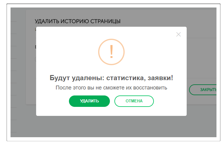 ❗Важно! История и заявки страницы будут удалены безвозвратно и их нельзя будет восстановить.