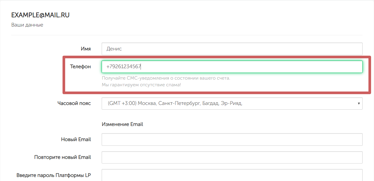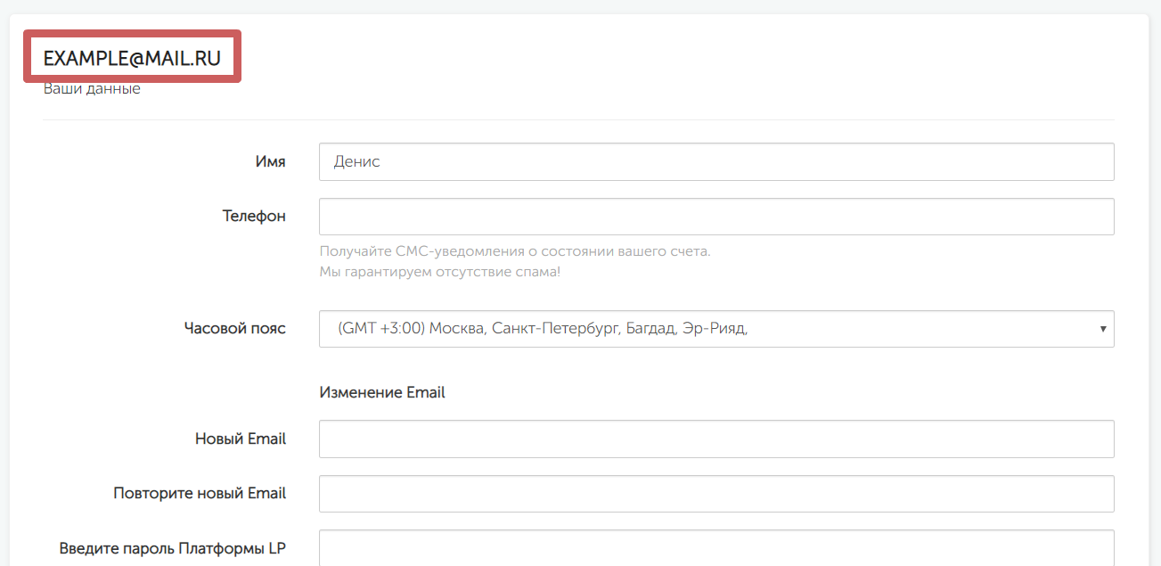 Все настройки выполняются в личном кабинете, разделе «Личные данные»