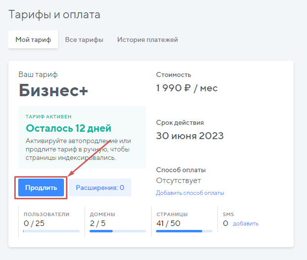 2. Как продлить текущий тариф?