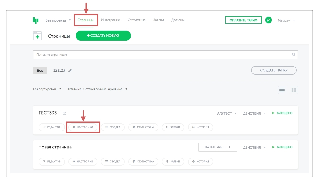 Шаг 1. Переходим в “Настройки страниц ”